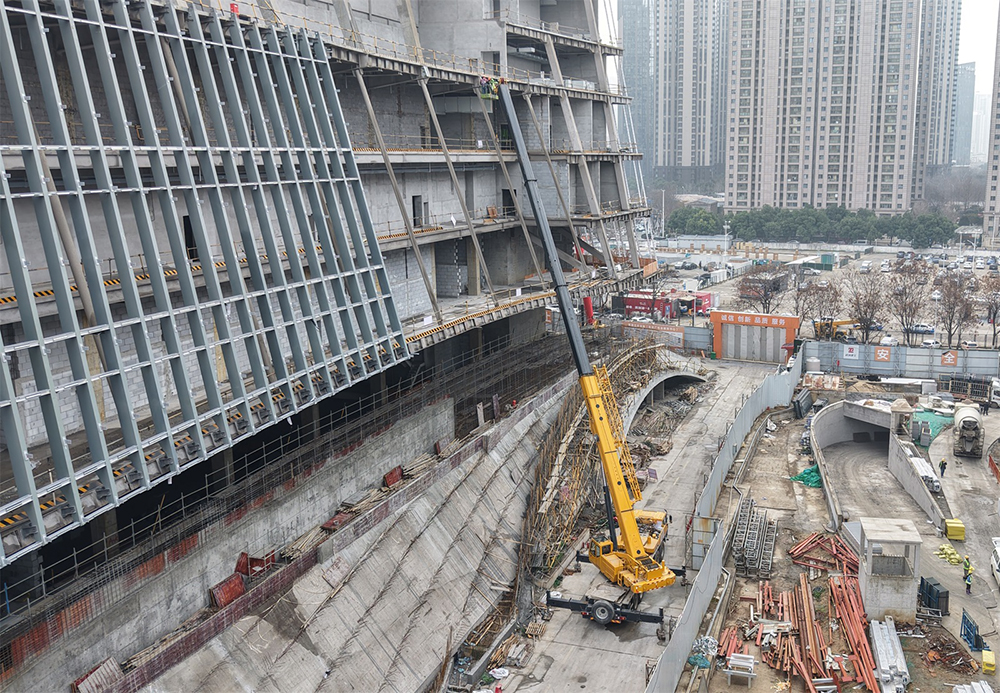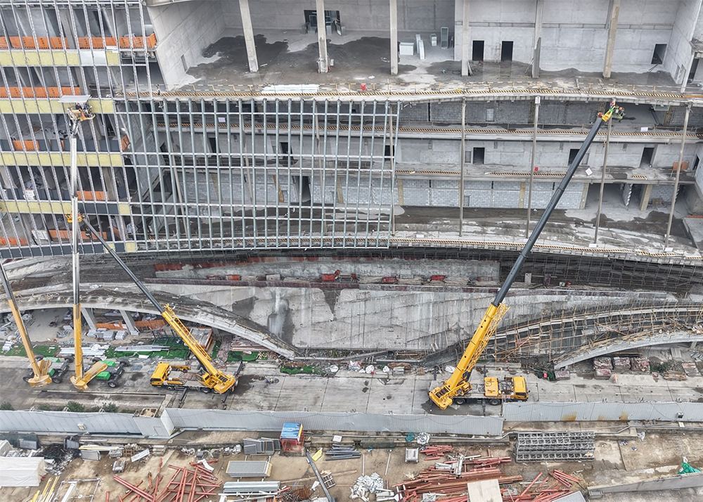 作为武汉重要的公共文化设施,新馆在结构施工、钢构吊装、外立面安装及配套设备安装等环节,对起重设备的稳定性、精细化操控能力提出了更高要求。面对工期紧、作业面复杂、吊装精度高等挑战,柳工起重机凭借可靠性能与智能化升级表现,成为现场施工的重要力量。