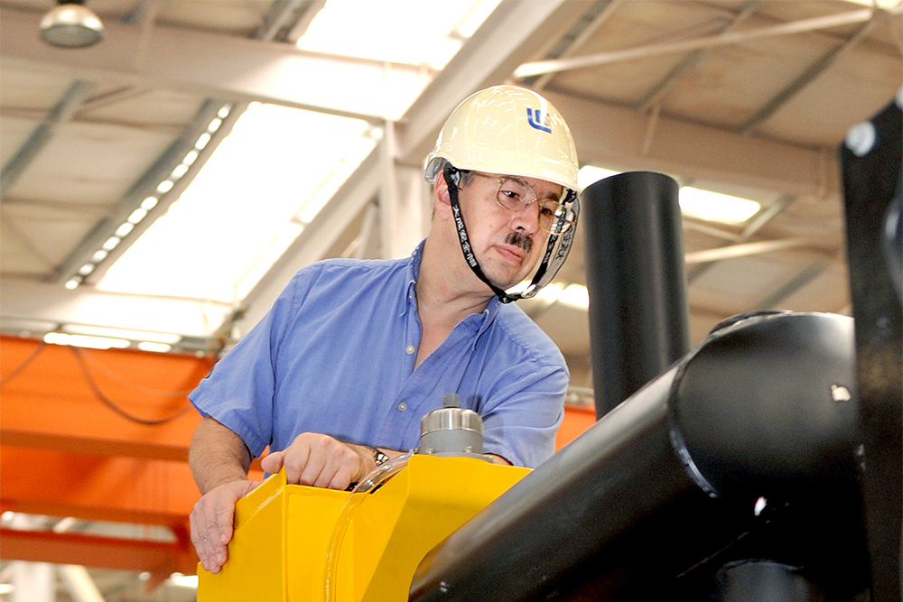 Dave Beatenbough在生产装机现场检查工作