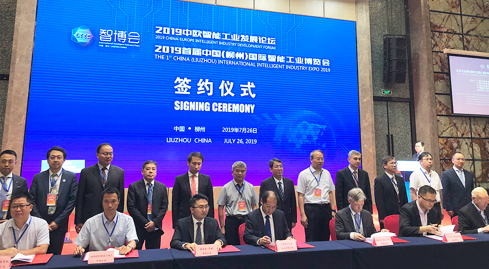 同时,广西柳工股份有限公司总裁助理罗维先生受邀参加2019中欧智能工业发展论坛、首届中国(柳州)国际智能工业博览会开幕式,并代表柳工与思爱普(中国)有限公司进行数字化工厂实施服务签约。