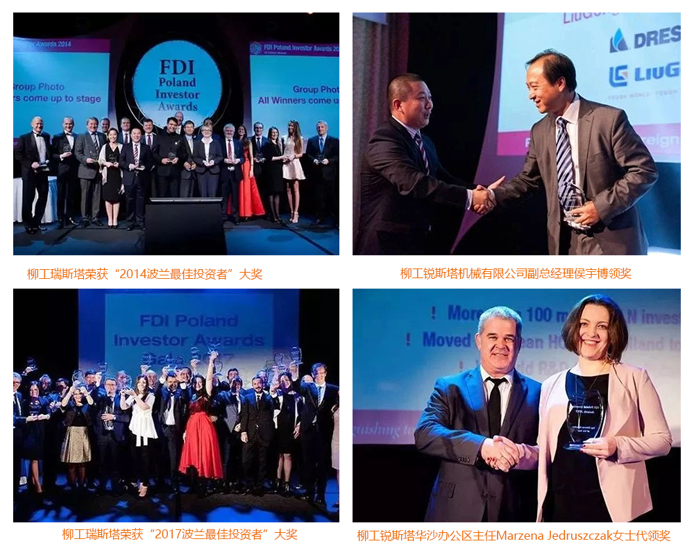 通过近年来柳工在波兰的努力,柳工锐斯塔机械有限公司先后荣获了“FDI波兰最佳中国投资者”、“波兰全国最佳雇主”、美国GE公司“最佳供应商”、柳工“2015年度最佳业务效益改善奖”等重要奖项。2015年5月6日,时任波兰共和国总统科莫罗夫斯基参观了柳工锐斯塔在波兹南Intermasz工程机械展的展台,对柳工在波兰的发展给予关注并表示肯定。2016年6月20日,国家主席习近平抵达波兰展开国事访问,柳工应邀在中国——波兰经贸合作论坛上发表主题演讲,交流柳工实施国际化战略的经验,着重分享柳工在波兰的投资与成果及在欧洲市场的发展战略。