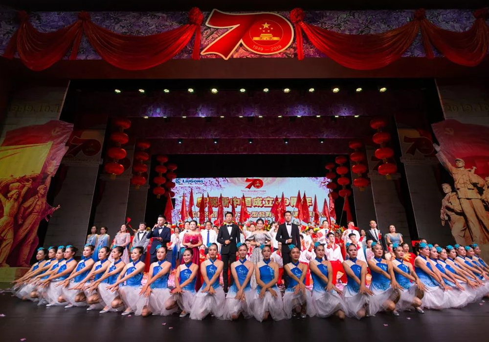 晚会以音画诗歌为媒,歌颂祝福伟大祖国,激励广大职工凝心聚力,共同书写新时代新篇章。柳工集团公司总裁郑津,党委副书记、工会主席李于宁等领导参加了晚会,共迎新中国70华诞。可容纳1500人的艺术中心大剧场内座无虚席,国旗飘扬。