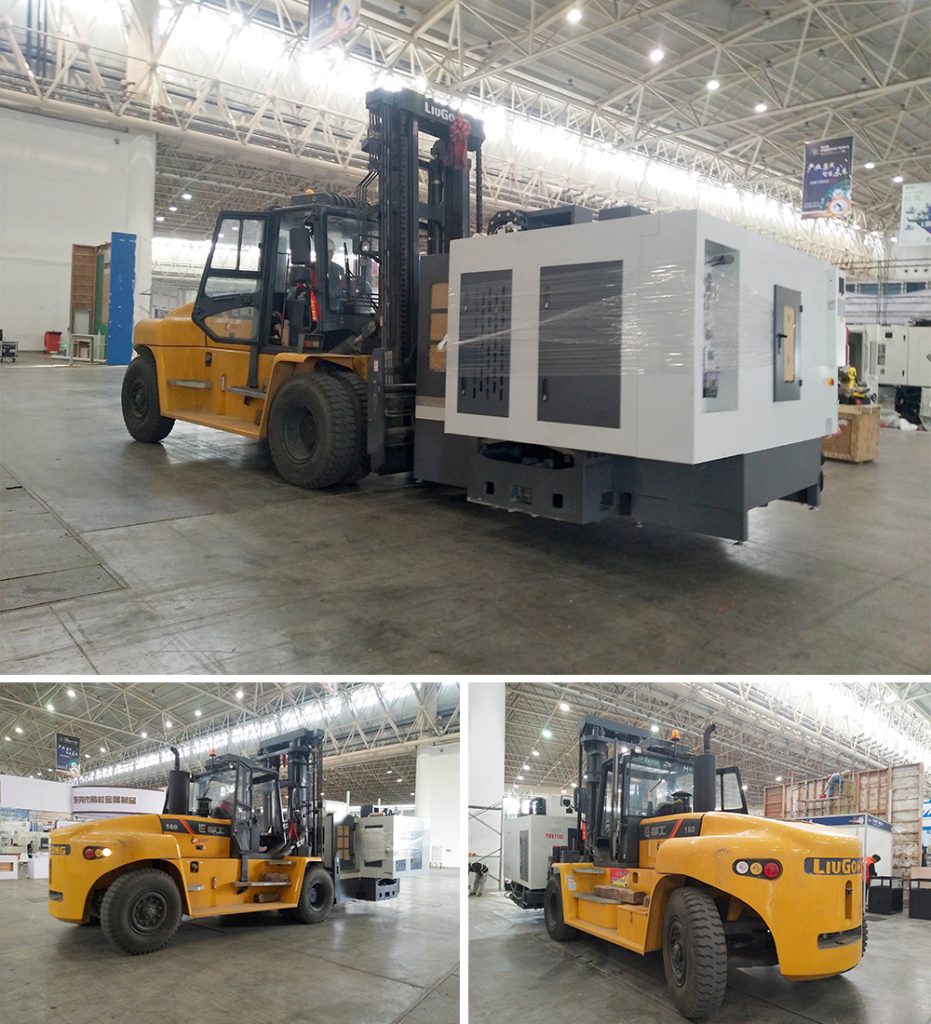 “你们可别小看展会上的这些柳工‘搬运专家’,比如远处的那台机床展品重达10多吨,是中国制造的明星产品,内含多个精密仪器,搬运时候需要小心翼翼,我们特意选用了柳工16吨叉车来搬运,因为它的微动性能非常好,刹车很轻便灵敏,机床毫发未损,客户非常满意。”