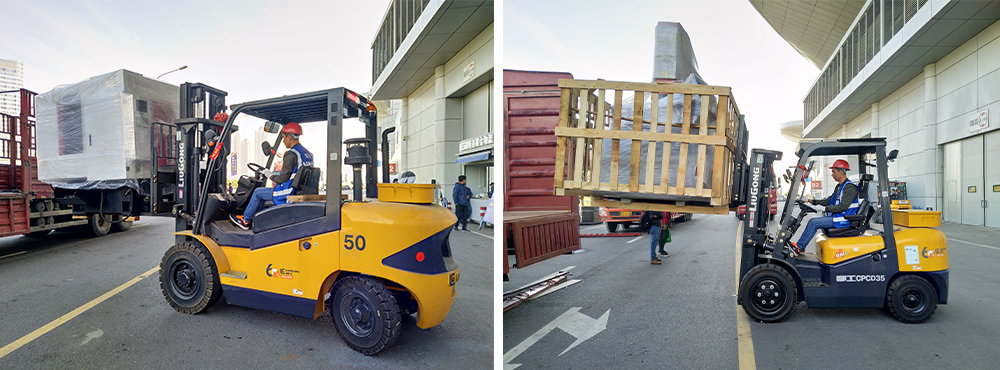 展会布展期间,穿梭全场搬运展品的一台台柳工叉车,成了一道道别样的风景,这些叉车是当地知名的某租赁公司的。