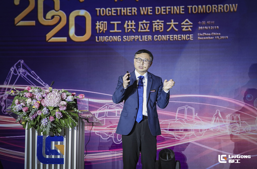 柳工的发展壮大,离不开与广大供应商的携手并进,2019年我们一起走过,有得有失,跟随金钢高级总监一起回顾过往,展望未来。他为大家展示了2019年柳工供应链的主要成绩,并对2020年供应链战略做出了部署,“柳工将从六个关键举措着手,与各供应商产销协同,联合降本,同心携手,打造以客户为导向的可靠、高效、全球化的供应链。”金钢说。