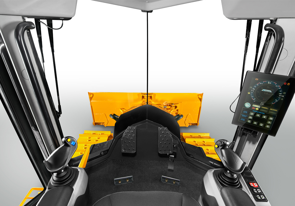 尽管设计团队将操作手视野和设备性能定为最重要的考量因素,但这并不是唯一的要素;操作手的安全同样重要。盖里说道,“几乎每位操作手都能经历过从履带上跌落的事故。为此,我们设计出第一台无需踏上履带的机器。”首先,团队在机器后部设计了防滑踏板,完全无需踩踏在履带上。这些踏板配有安全扶手,可始终保持三点接触,轻松进出驾驶室。TD-16N 是同类产品中唯一能够“免踩履带”进入驾驶室的推土机。