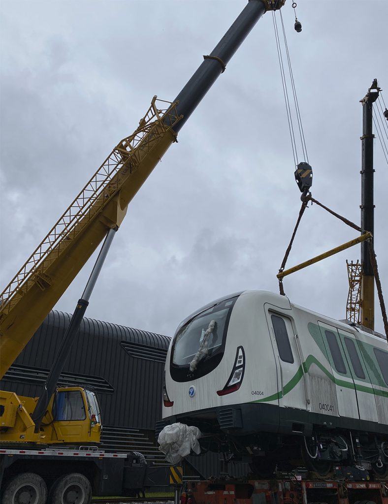由中国中车生产的地铁车头正安静的停放在中铁一局的院内,如何把这个重达40多吨的大家伙安稳放上拖车,再送到宁波地铁四号线,成了当务之急。车头造价昂贵,高达2000万元,加上车身比例、重量、大风等因素限制,此次吊装任务除了对设备的起重性能有要求外,对起重机的稳定性、微动性以及安全性等要求极高。几经周折下,施工方最终找到了陈老板和他的得力干将——TC800C6。
