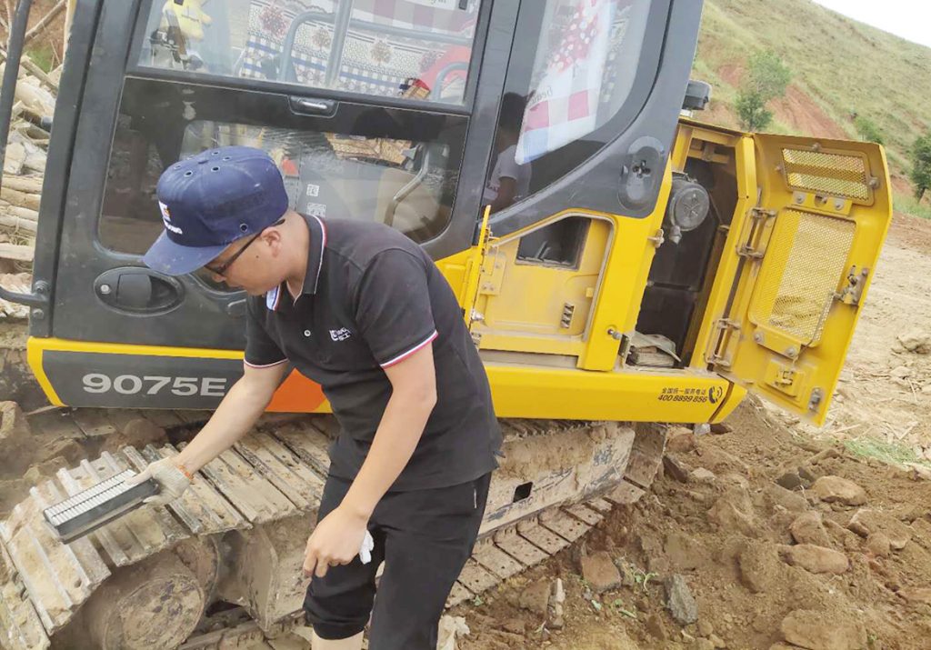 疫情期间,为保障客户设备的正常运转和保养需求,王邦兵不仅第一时间奔赴客户工地为其解决故障问题,还主动上门为客户进行免费保养和消毒服务。同时,他还通过电话、微信、网络等社交软件为客户提供远程服务支持,指导客户对设备进行检修、保养等。