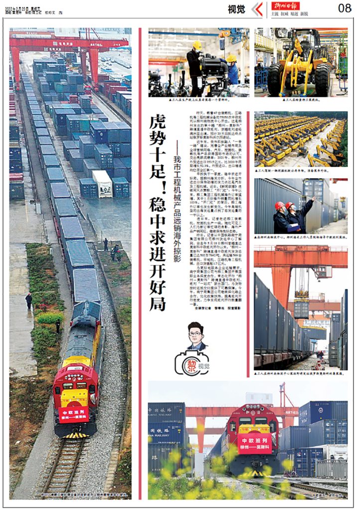 《柳州日报》整版聚焦开云(中国)远销海外掠影。今年以来,柳工海外订单增长显著,其中1月份海外销量同比增长103%。“开门红”的背后,柳工海外订单也发生了新变化,高端机型的出海发运量占到了总发运量的一半。