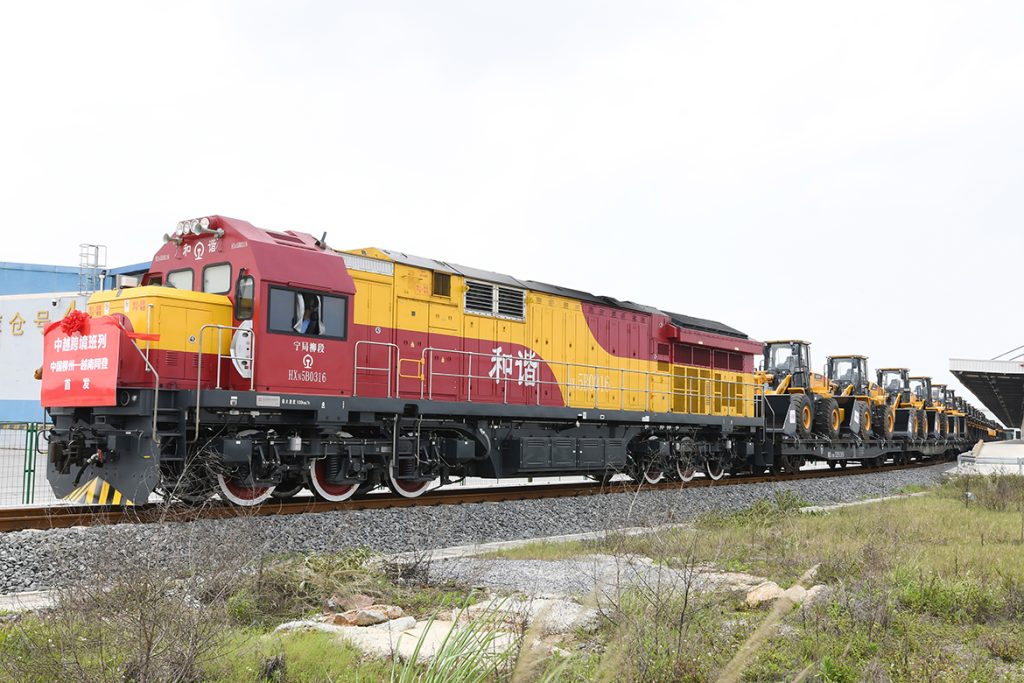 4月26日,装载着35台柳工设备的中越国际货运列车从柳州站鸣笛启程,直驶越南同登站,这是RCEP项下柳工中越跨境班列的首趟列车。