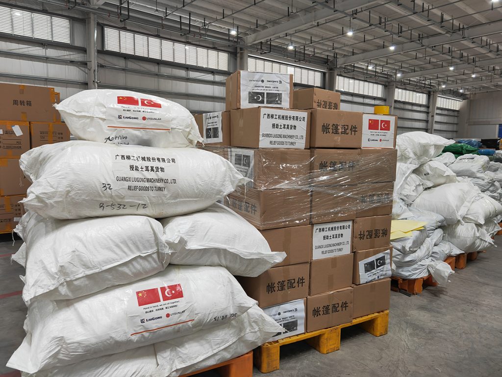 2月6日,土耳其连续发生两次7.8级地震,造成重大人员伤亡和财产损失。面对灾情,柳工紧急向土耳其空运6500KG的人道主义救援物资,包含帐篷、毛毯、睡袋等,支持地震救援工作。