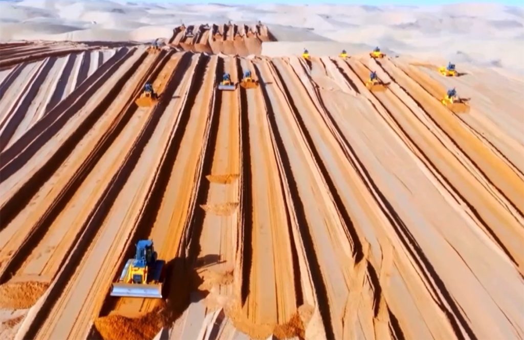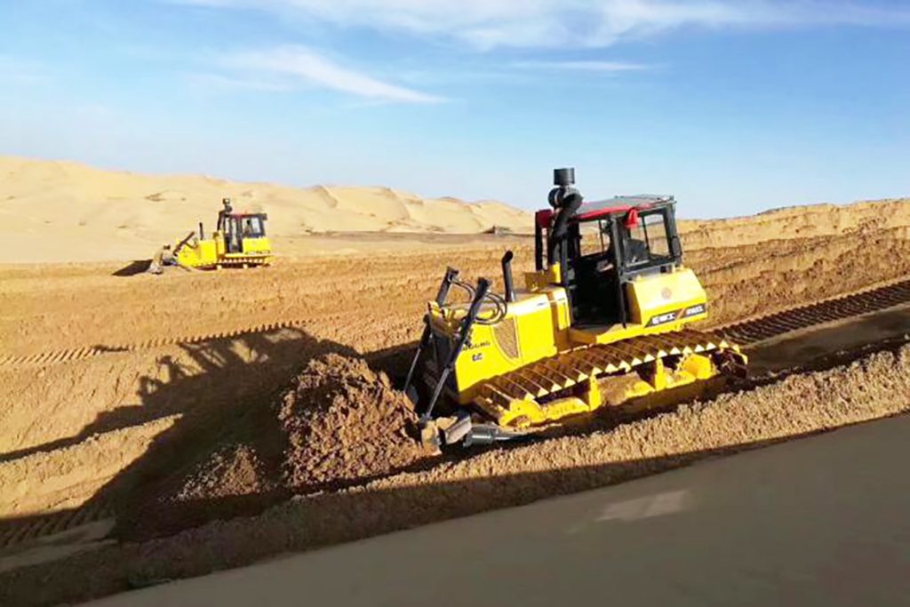 项目初期,共有16台柳工B160CL湿地型、液力型、机械型特殊配置推土机参与库布齐基地建设,因光伏项目阶段性工期时间紧、任务重,柳工再度投入15台B160CL推土机参与该项目沙漠场地的平整作业。