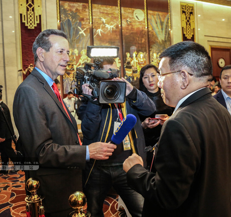 3月7日,十三届全国人大二次会议广西代表团举行全体会议,审查计划报告和预算报告。会议向中外媒体开放,共计45家中外媒体的100多名记者把目光聚焦于深化改革开放、充满发展活力的壮美广西。其中,全国人大代表、柳工集团董事长接受外籍知名记者的采访。