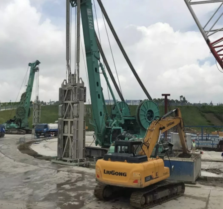跨越浔江的平南三桥位于广西荔浦至玉林高速公路南北互通线上,设计主跨度达575米,建成后将成为世界超大跨径的拱桥。承接主桥地连墙施工作业的就是上海金泰工程机械有限公司制造的SX40双轮铣和SG600地连墙抓斗,以及柳工922E挖掘机。