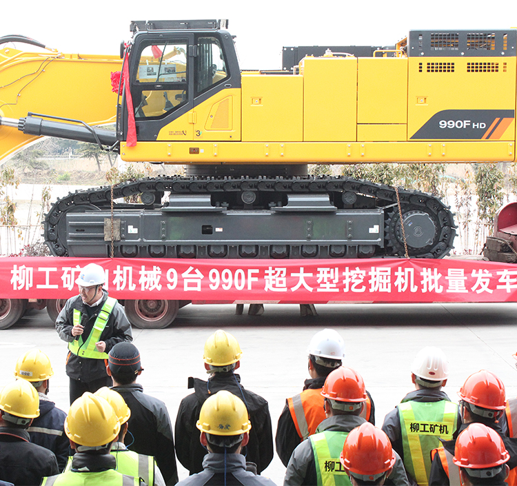 2月22日,990F超大型挖掘机批量发车仪式在柳工东部基地举行,刷新了柳工超大型挖掘机单笔交易量新高。