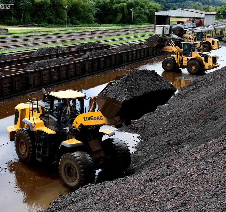 柳工矿山施工成套设备解决方案,黄金搭档——采装运输协作,870H中国神车、950E 采矿专家;黄金搭档——破碎筛分协作,933E装车达人、856MAX中国大力神,破碎站、筛分站。