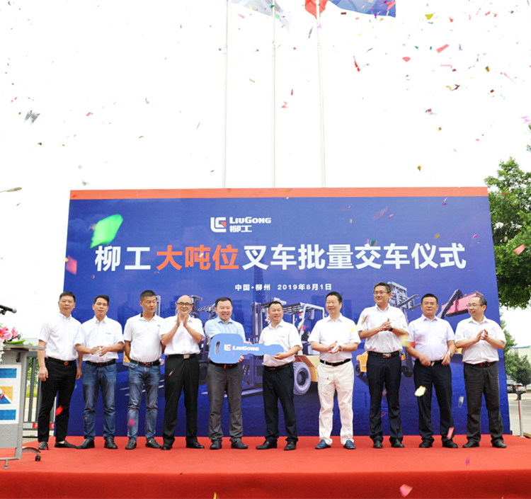 8月1日,柳工叉车公司举行大吨位叉车批量交车仪式。柳工叉车公司常务副总经理肖远翔等领导、某知名快运公司史总裁一行及柳工叉车员工代表约120人参加仪式,共同见证这一激动人心的时刻。