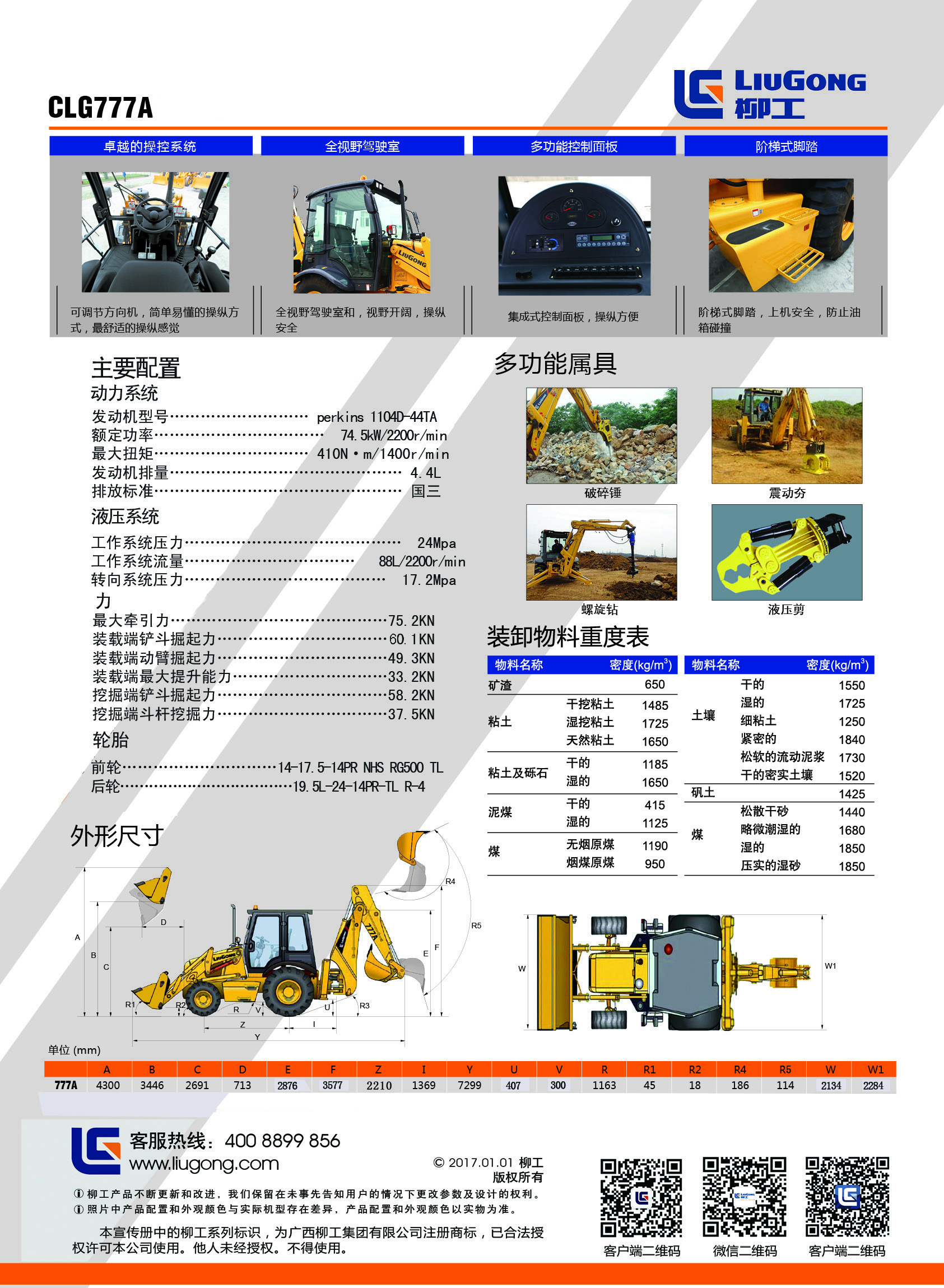 符合ISO要求挖掘装置,可选配伸缩臂,最大挖掘深度可达5.4米。
