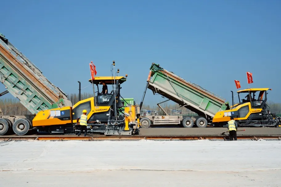 柳工自研的摊铺机熨平板抗离析技术同样功不可没,确保摊铺材料被均匀、精确地摊铺在路面上,为后续压实奠定了坚实基础,保障了摊铺路面的平整度要求,远超项目预期。