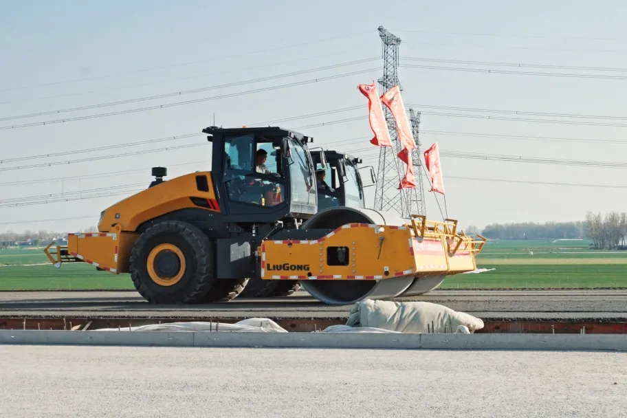 对于核心的压实效果,项目方选择了3台柳工6626E大吨位单钢轮压路机。采用柔性无冲击激振器、大直径和大激振轮,确保了振动轮两端振幅均匀,压实深度足、密实度高且路面平整。最终的压实度检测结果给了施工方“巨大的惊喜”——显著优于国家标准要求,为高速公路的长期耐久性提供了坚实保障